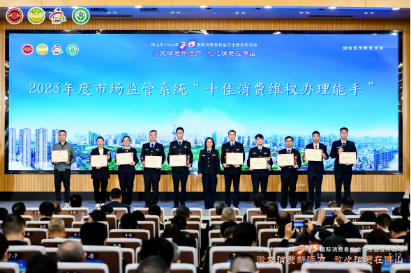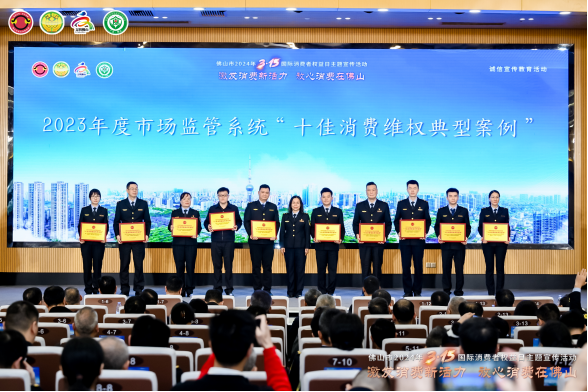 活動現(xiàn)場還為2023年度佛山市及市場監(jiān)管系統(tǒng)的十佳消費(fèi)維權(quán)典型案例承辦單位、十佳消費(fèi)維權(quán)辦理能手,“放心消費(fèi)承諾”“線下無理由退貨承諾”單位,以及市級消費(fèi)教育基地單位等授牌。