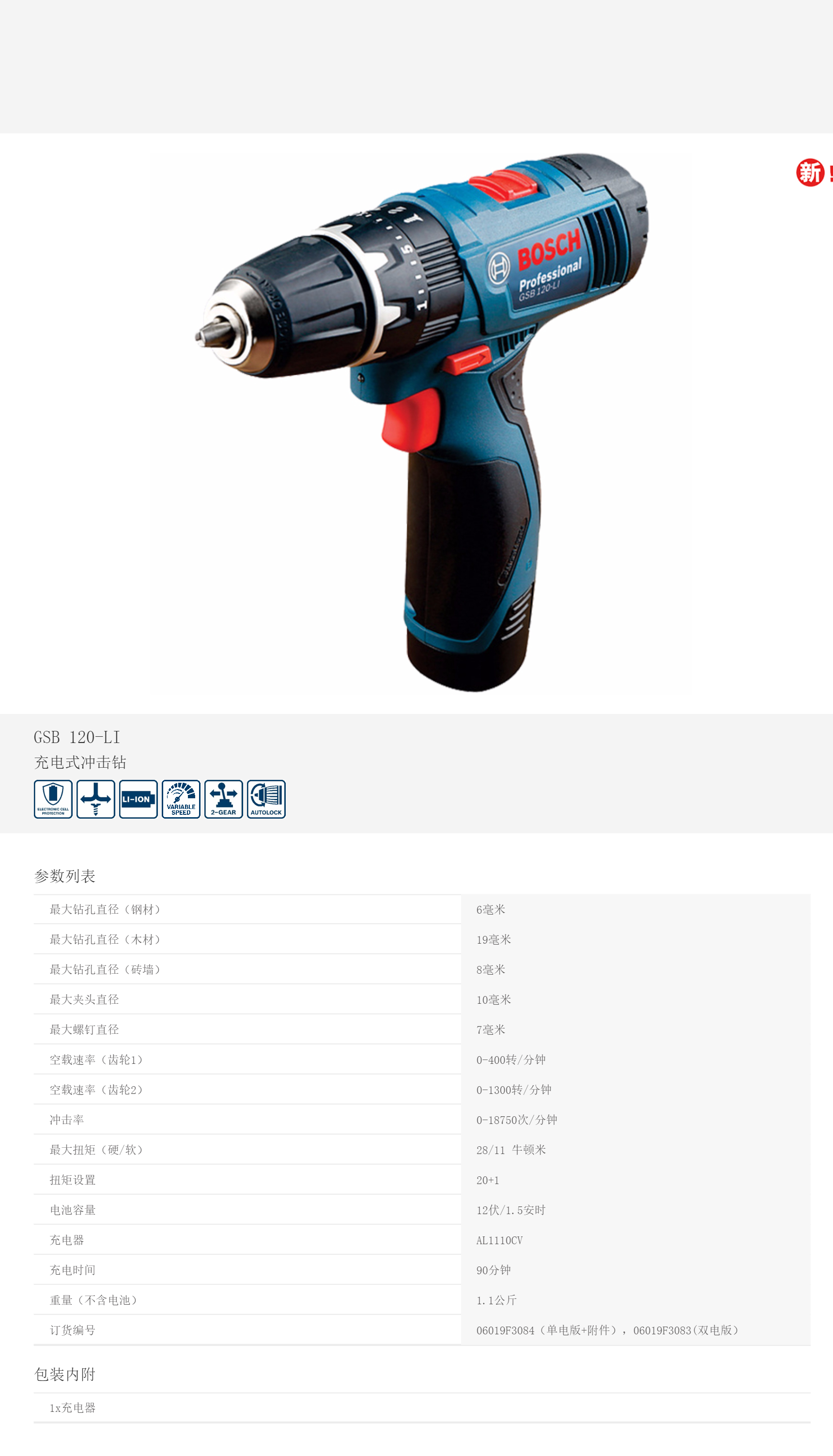 產(chǎn)品名字:博世充電沖擊鉆GSB120雙電