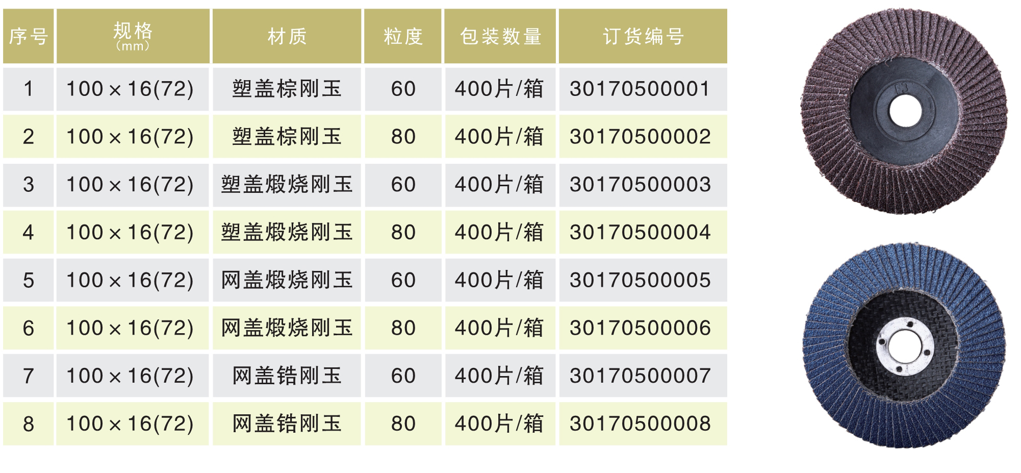 產品名字:東成百葉片網蓋煅燒鋼玉#60# 100x16x72