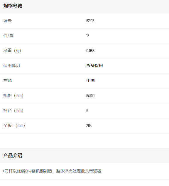 首頁>產(chǎn)品中心>螺絲批>一字螺絲批>世達(dá)A系列一字批6x100mm