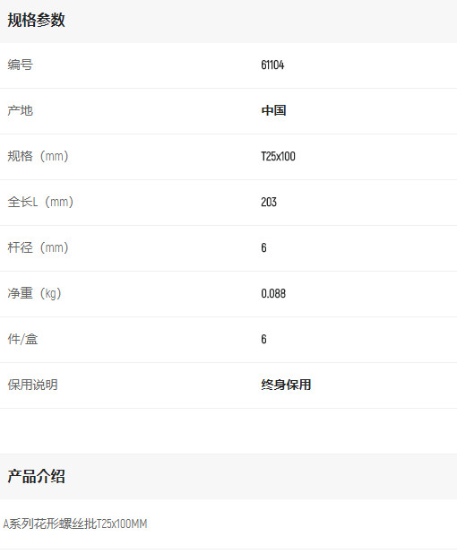 產(chǎn)品名字:世達花形螺絲批T25*100mm